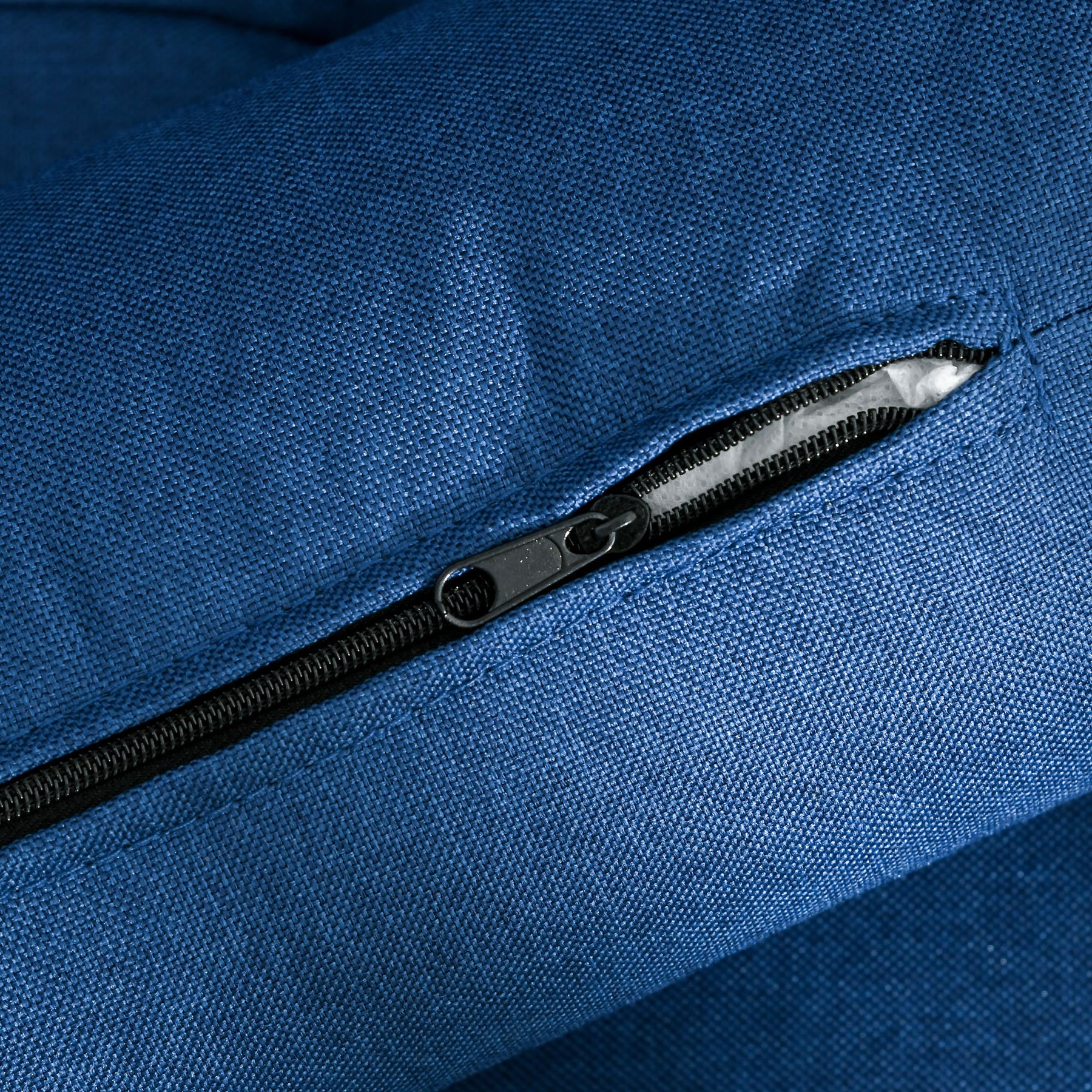 - • Materials: Linen (100% Polyester), Foam, Eucalyptus Wood, Steel