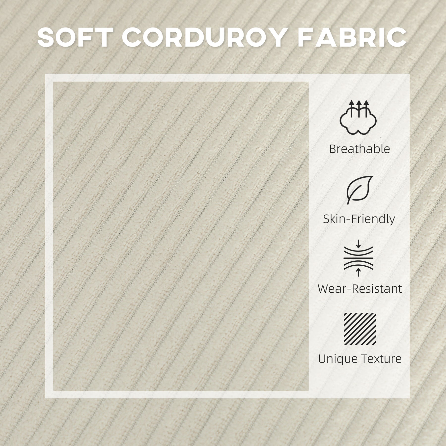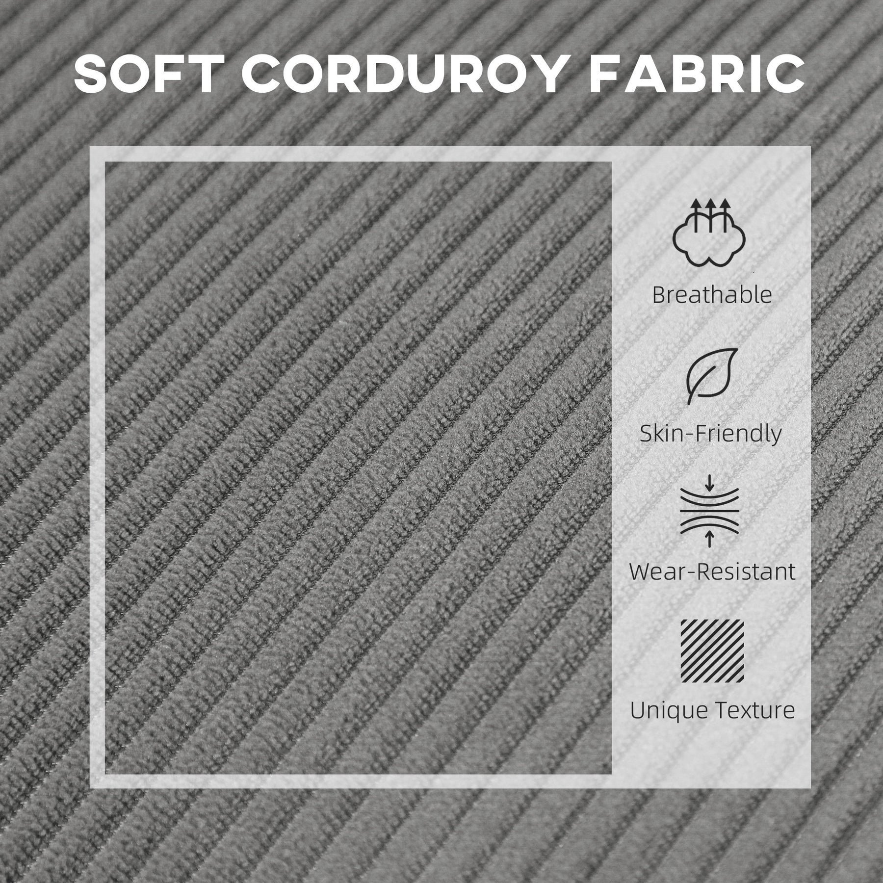 - • Materials: Corduroy (100% Polyester), Eucalyptus Wood, Rubber Wood, Foam