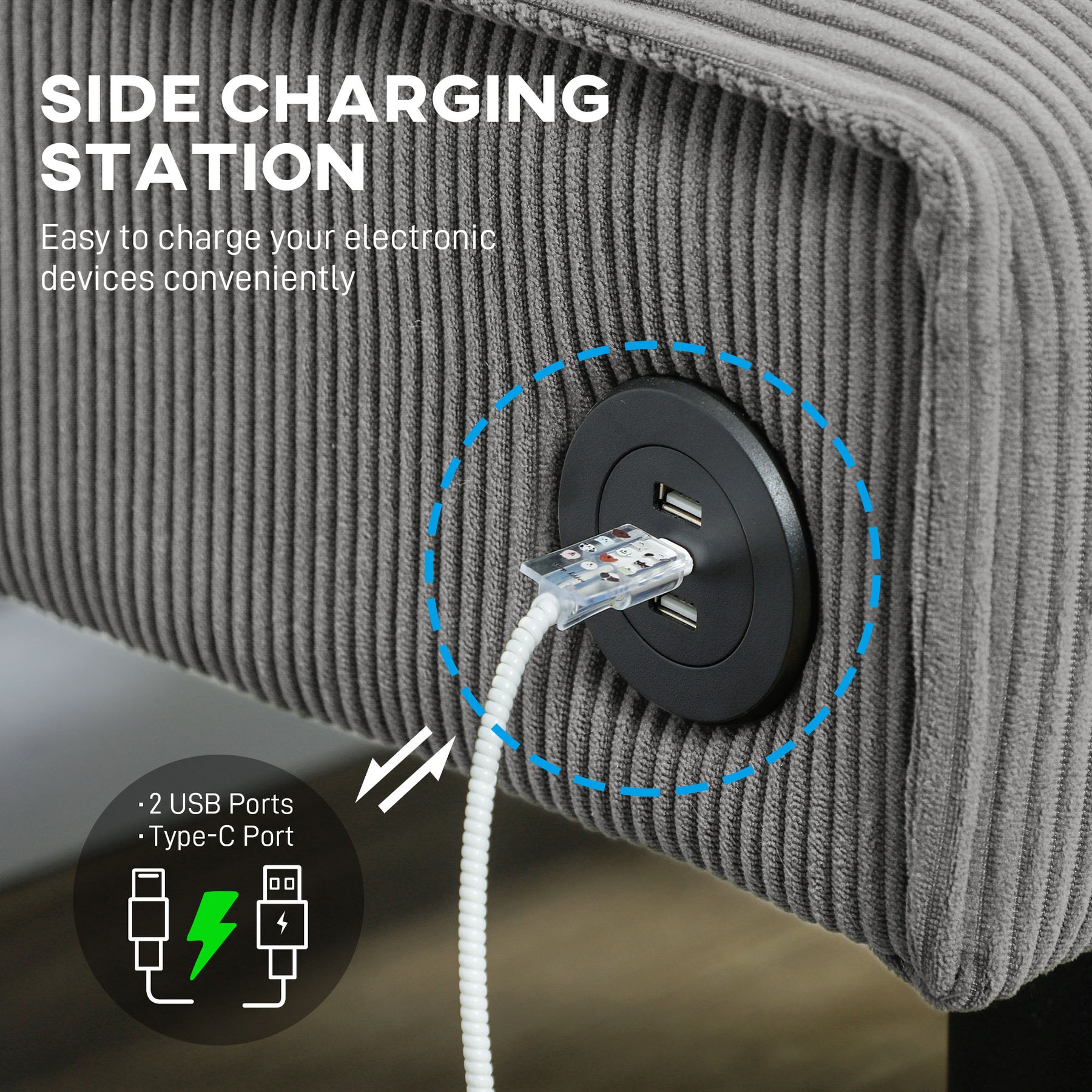 Snuggle up in style with the small loveseat from HOMCOM, a space-saver for any living space. Equipped with handy USB and Type-C ports, this modern sofa keeps your devices charged while you unwind. Corduroy fabric promises cozy moments on the small sofa, adding a touch of comfort and style to your relaxation time. Imagine cuddling on the fabric sofa with your lover wrapped in a blanket on a cold winter night, watching a movie. How wonderful!