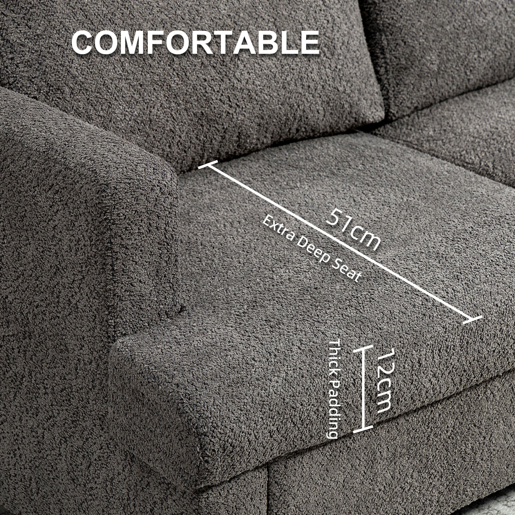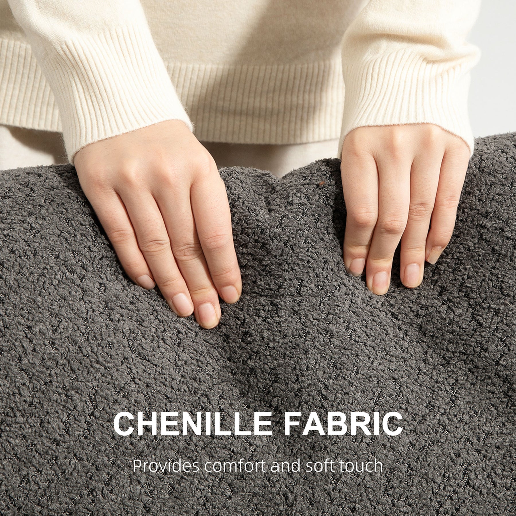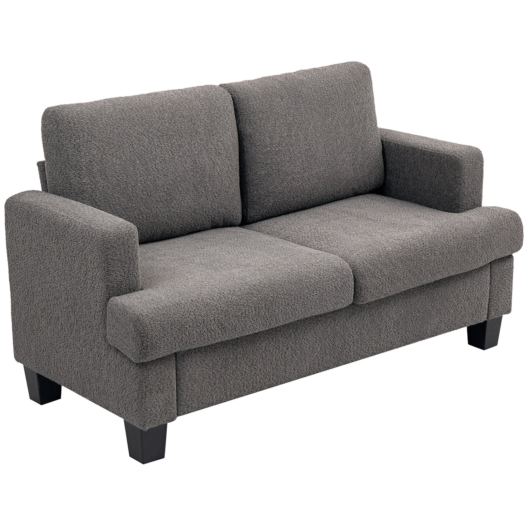 Sink into the plush comfort of the HOMCOM small loveseat sofa, where chenille softness meets modern elegance. With a 12cm thick, high-density sponge cushion supported by S-springs, this small sofa ensures a cozy seat in any living room or study. Its compact design and solid colour are complemented by two washable cushions, making it a stylish and practical choice for any space.
