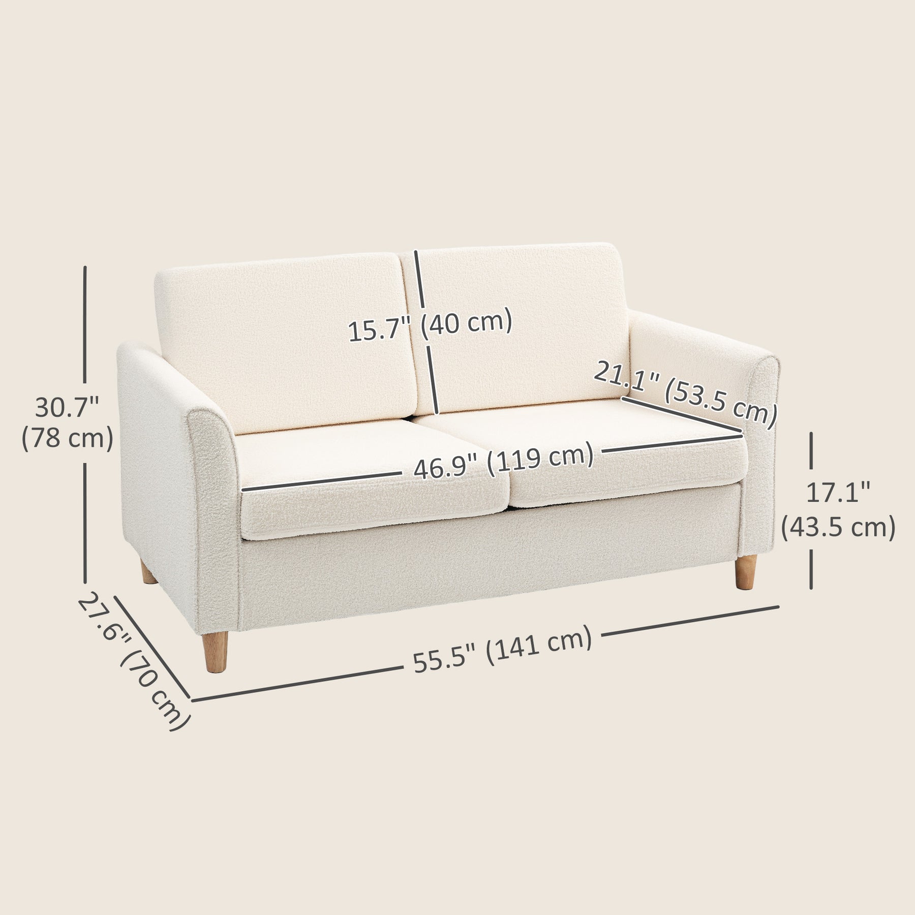 Indulge in a cozy and comfortable movie or game night with HOMCOM's minimalist couch for bedroom. This loveseat sofa is great for two people, with extra-wide seats that ensure a relaxing experience. The solid wood structure with wooden legs ensures its stability and longevity. The inviting foam cushioning and easy-to-clean linen upholstery make it a stylish addition to any room, be it your living room, bedroom, or study. Get yours now and elevate your relaxation game!