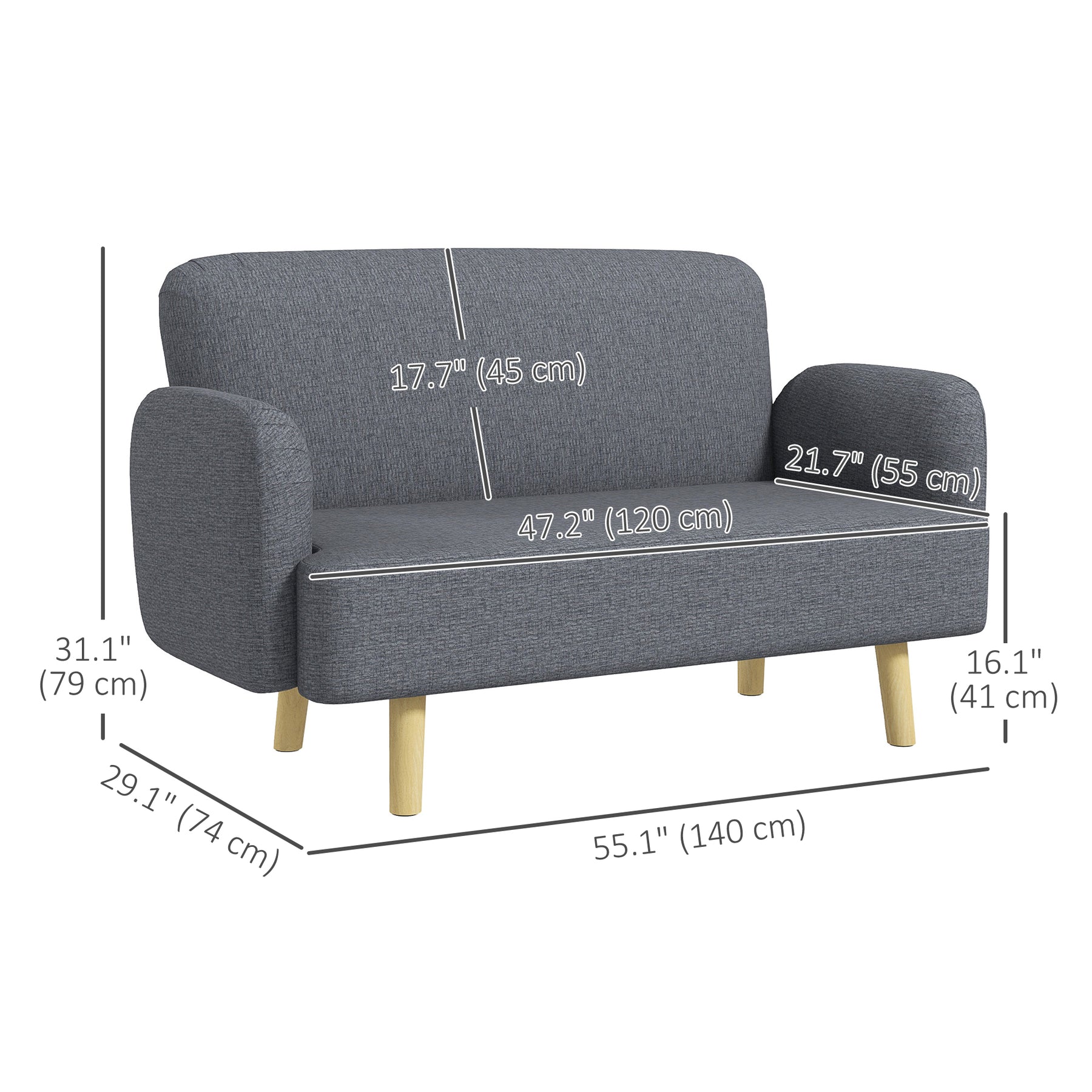 Snuggle up in style with the HOMCOM Loveseat! Its 8.3" (21 cm) padded seat and plush armrests envelop you in comfort, while the velvet-feel fabric caresses your skin. Supported by four solid rubberwood legs, this loveseat sofa offers a chic touch to any small space, be it your living room, bedroom, or office.