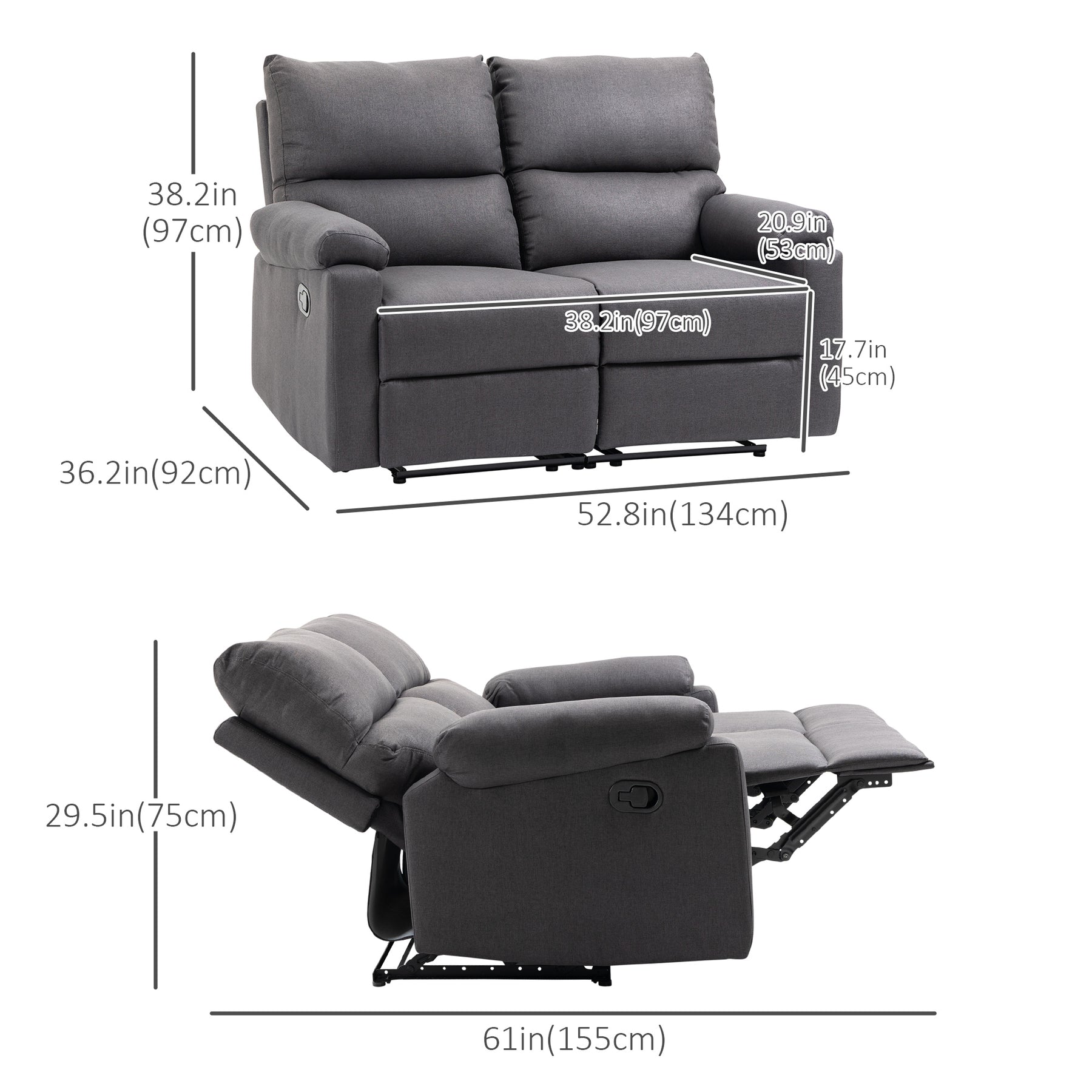 Providing high comfort for your family with a beautiful touch of contemporary charm to your home, this home theater seating offers the balance of relaxation and comfort. Features 2 separate recliners with ease-to-pull handles, providing a comfortable place to watch a TV show. Creates a great lounge spot for a movie night with HOMCOM's loveseat recliner!