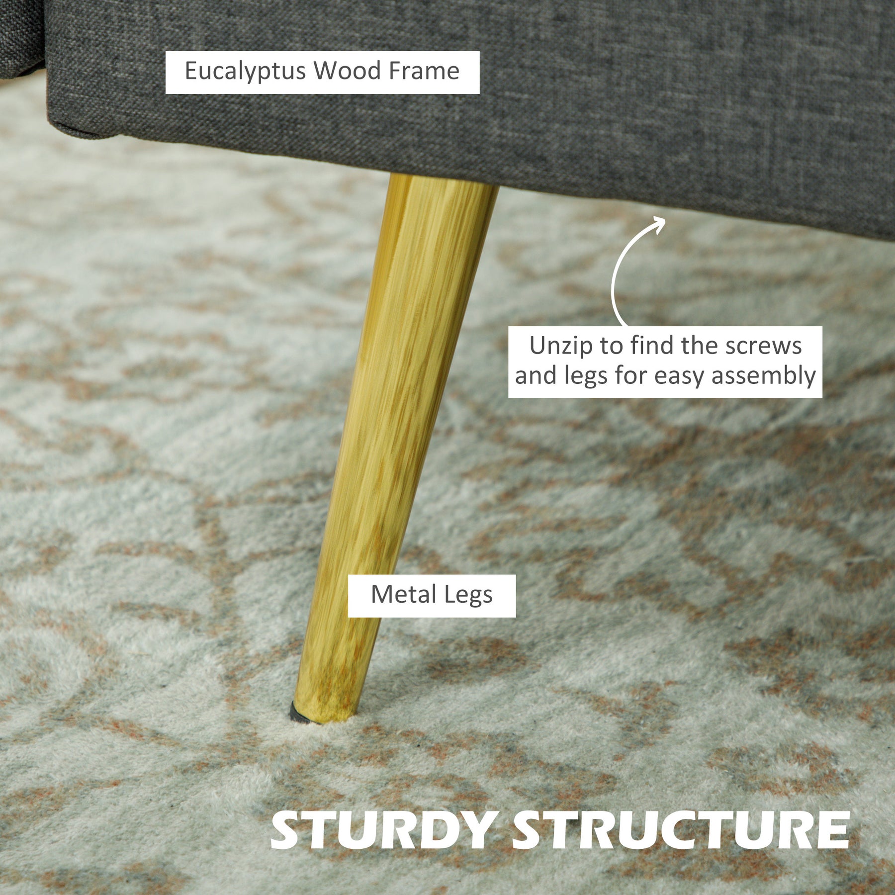 - • Materials: Linen (100% Polyester), Foam, Eucalyptus Wood, Steel