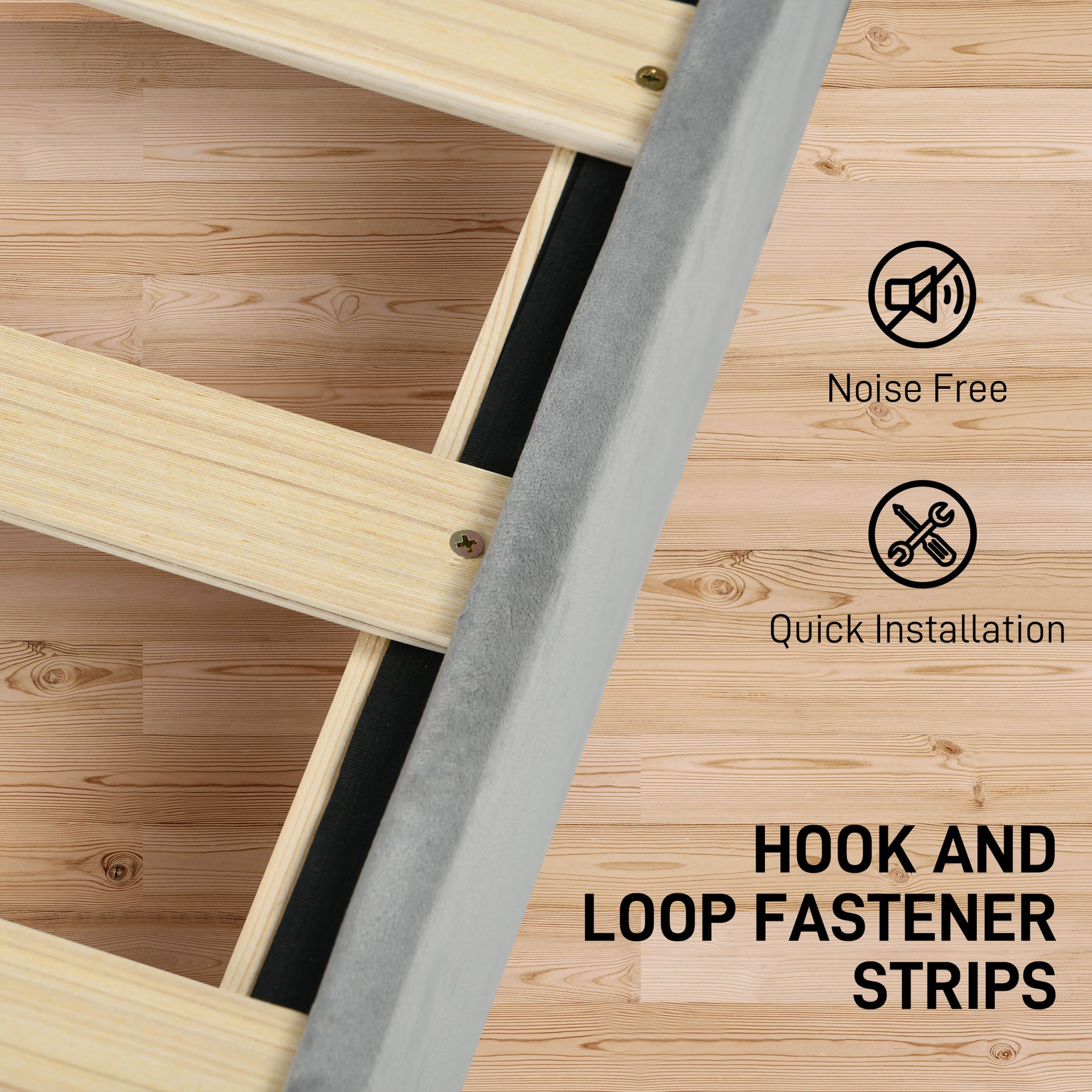 - • Pre-connected wood slats with hook and loop fasteners for quick installation and noise reduction