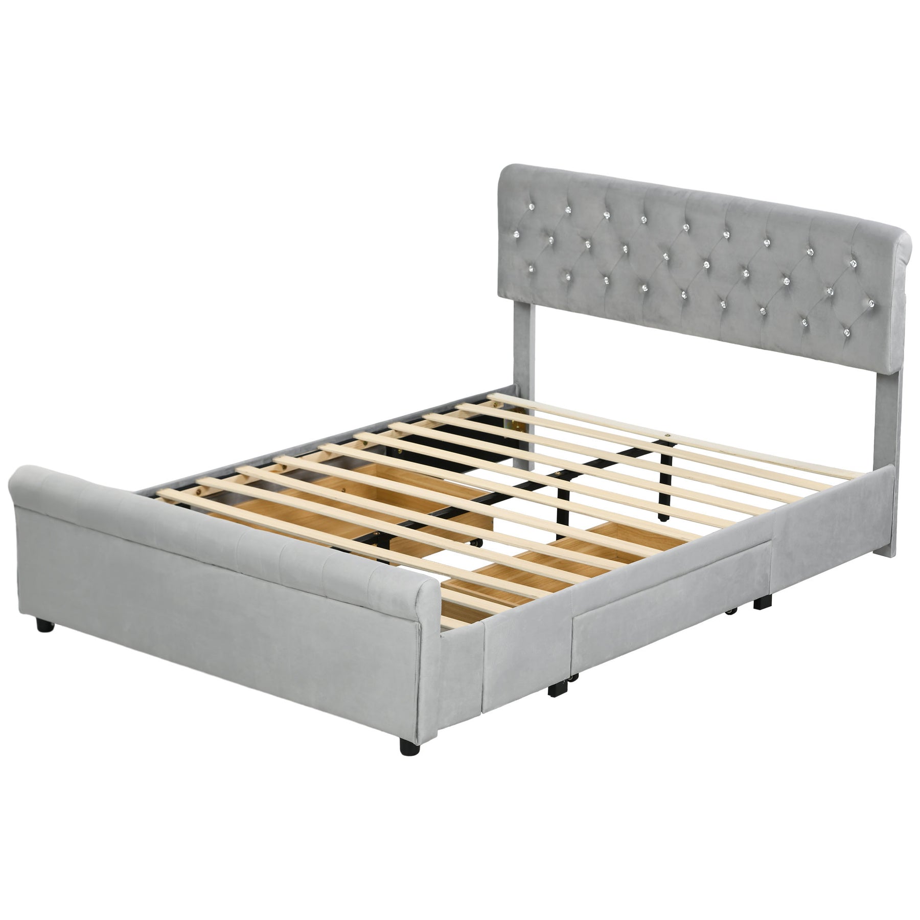 Transform your bedroom with the HOMCOM bed frame, a stunning blend of luxury and practicality. Adorned with crystal decorations on the headboard and draped in soft, velvet-like fabric, this full size bed frame with headboard promises elegance and comfort. Equipped with two large, wheeled drawers, it offers lots of storage for your essentials, making it a stylish yet functional choice for any bedroom.
