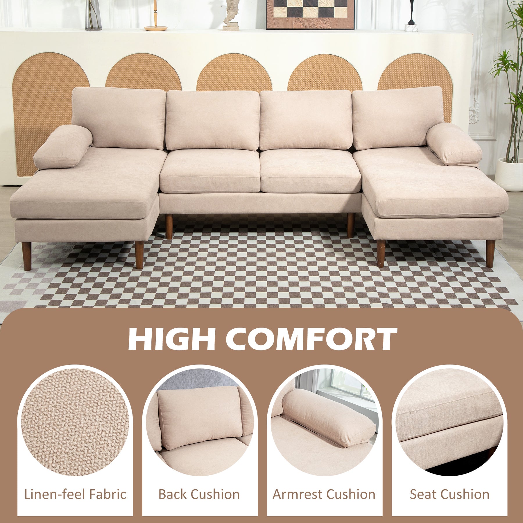 The U-shaped sofa with double chaises from HOMCOM offers versatility and spacious seating, providing ample space for relaxation and entertainment. Upholstered in breathable linen-feel fabric, our fabric sofa combines comfort with style, making it an excellent choice for modern or traditional living room settings.