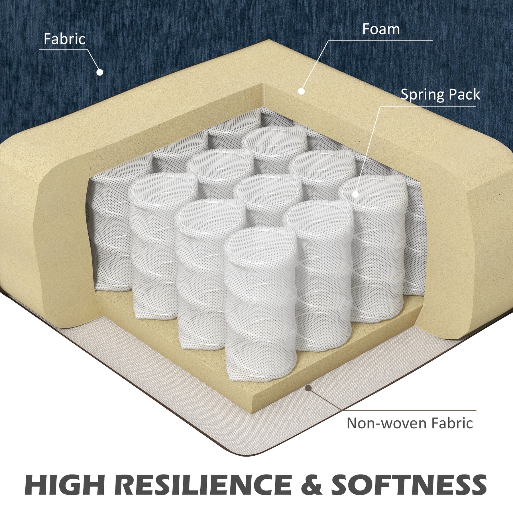 - • Seat cushion with spring pack and high-density foam for comfortable sinking