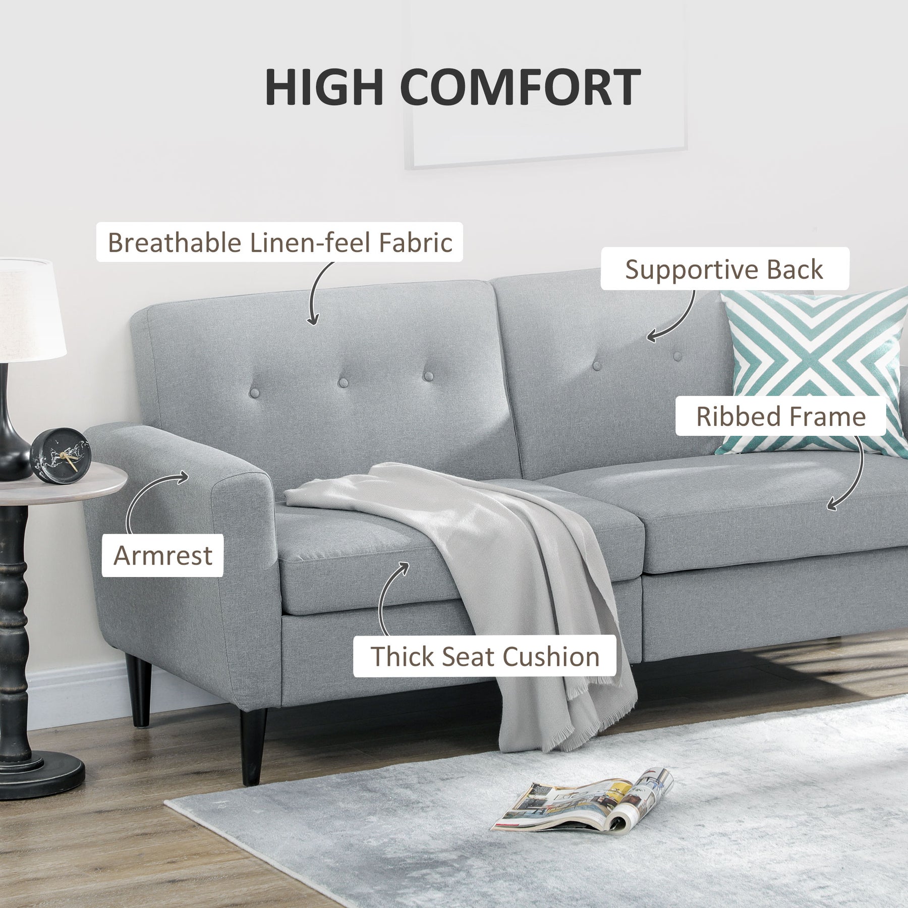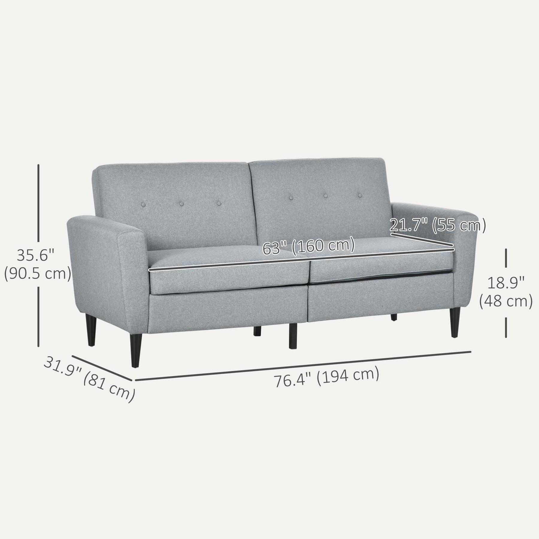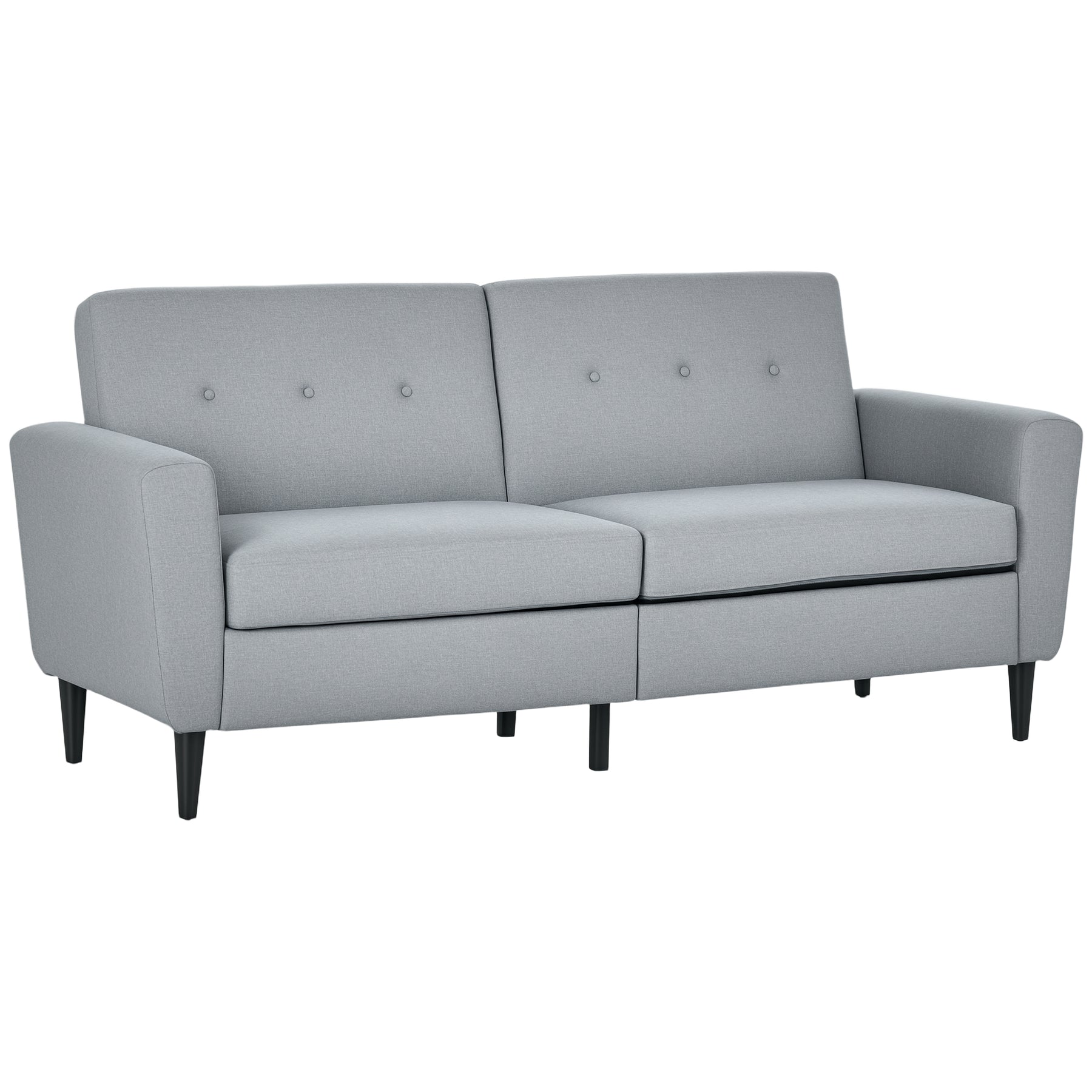 Sink into something comfortable without sacrificing valuable space in your home with this small bedroom couch from HOMCOM. The three-seater design is great for fitting into compact spaces and is spacious enough to relax with family and friends. Its soft linen-touch fabric, thick padded seat, and ribbed internal frame offer exceptional comfort. Meanwhile, its linen-touch surface, button-tufted back, and black wood legs evoke elegance. Enjoy a comfortable living room sofa with HOMCOM!