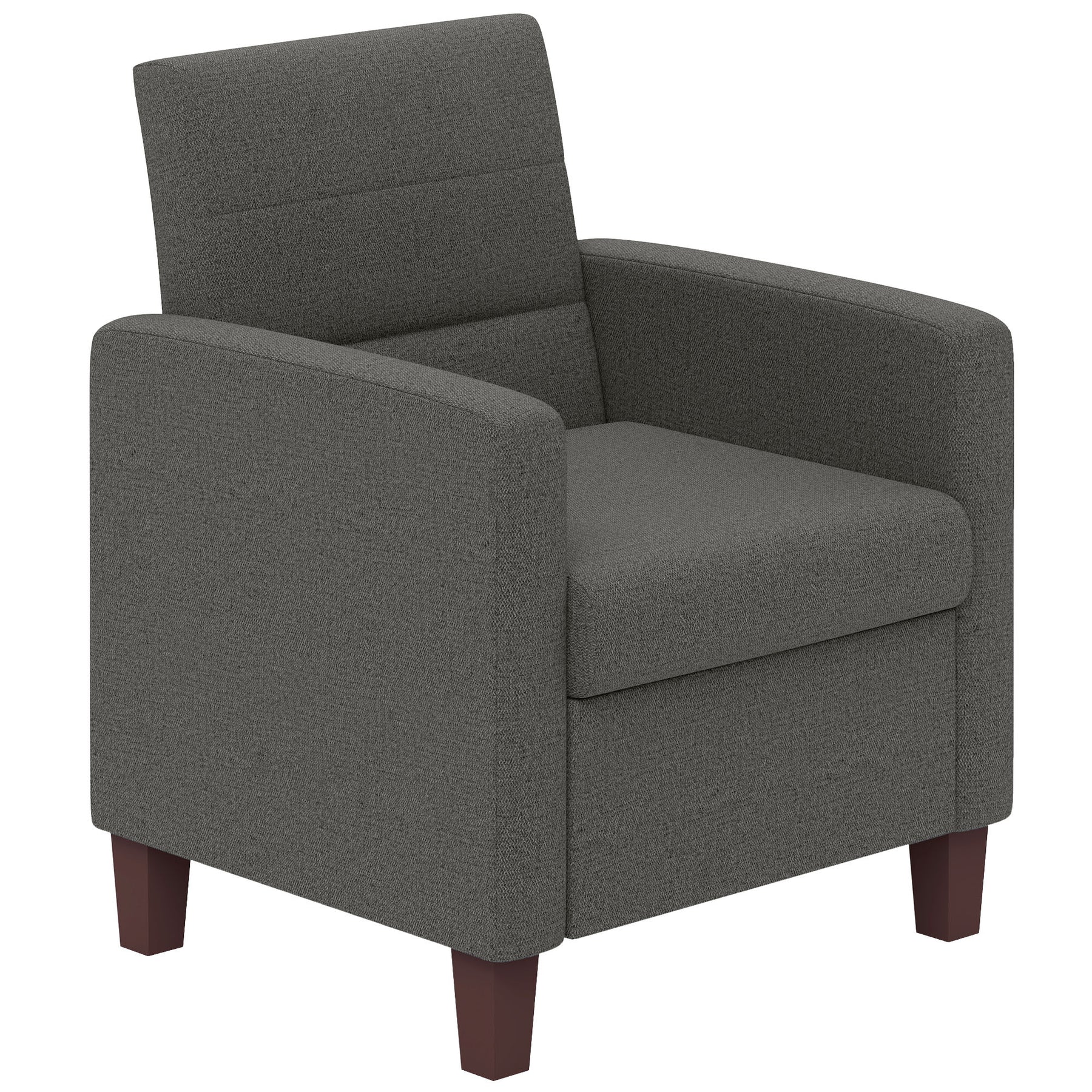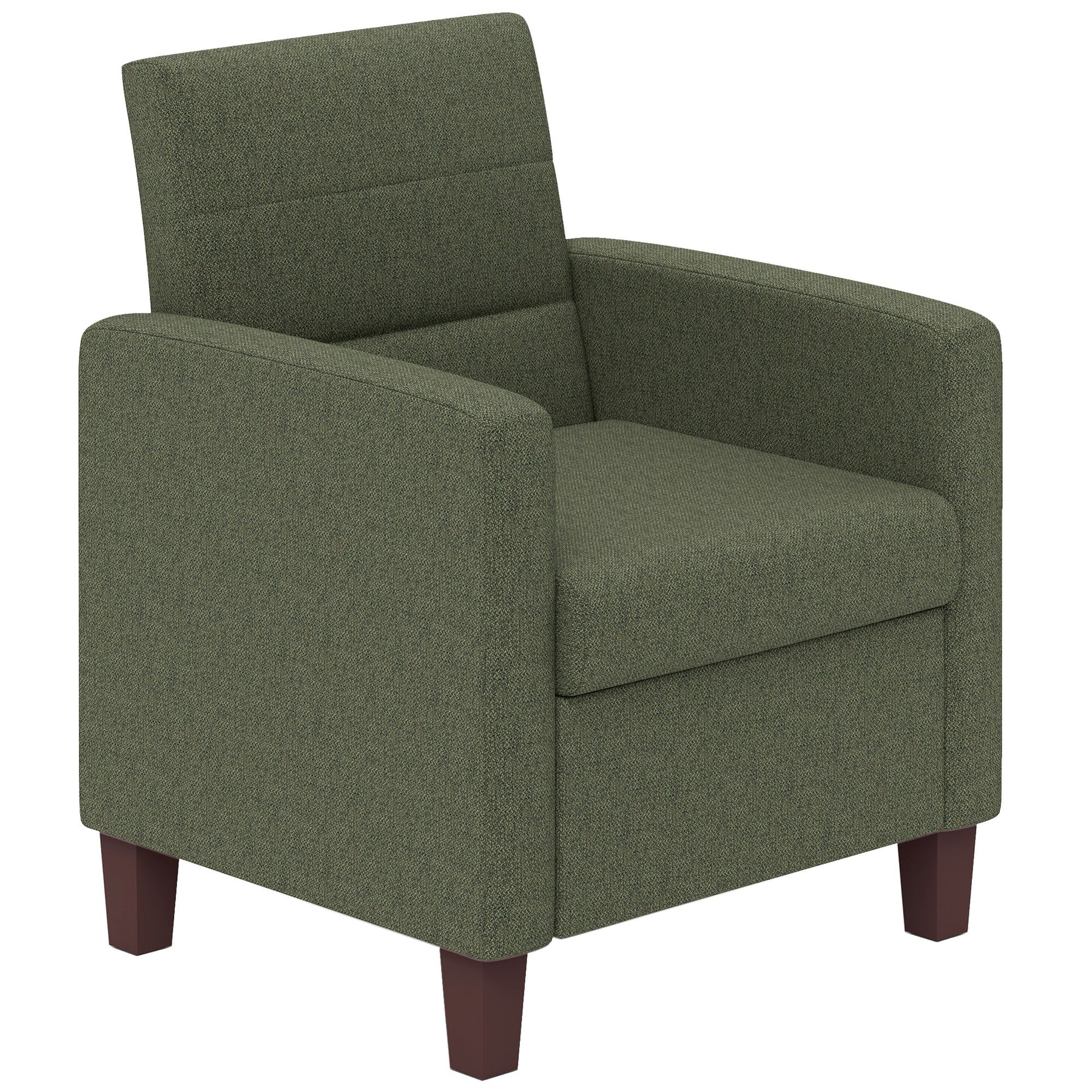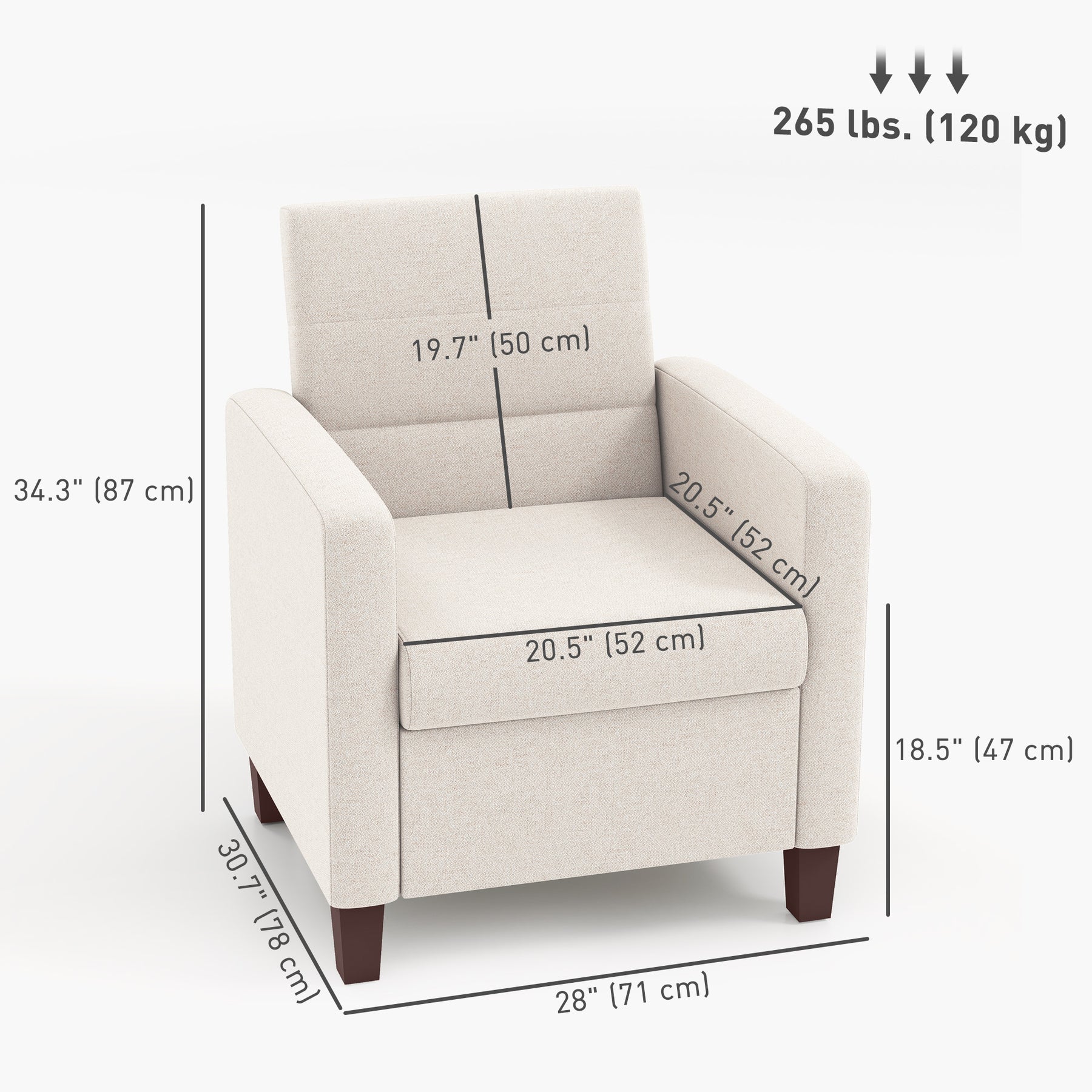 Sink into style and comfort with the HOMCOM Armchair—a chic addition to any living room or bedroom. Wrapped in breathable linen-feel fabric, this chair offers a cozy retreat with its medium-density foam-filled seat cushion and backrest. The removable, zippered cushion makes cleaning a breeze, while the non-slip foot pads help preserve your floors.