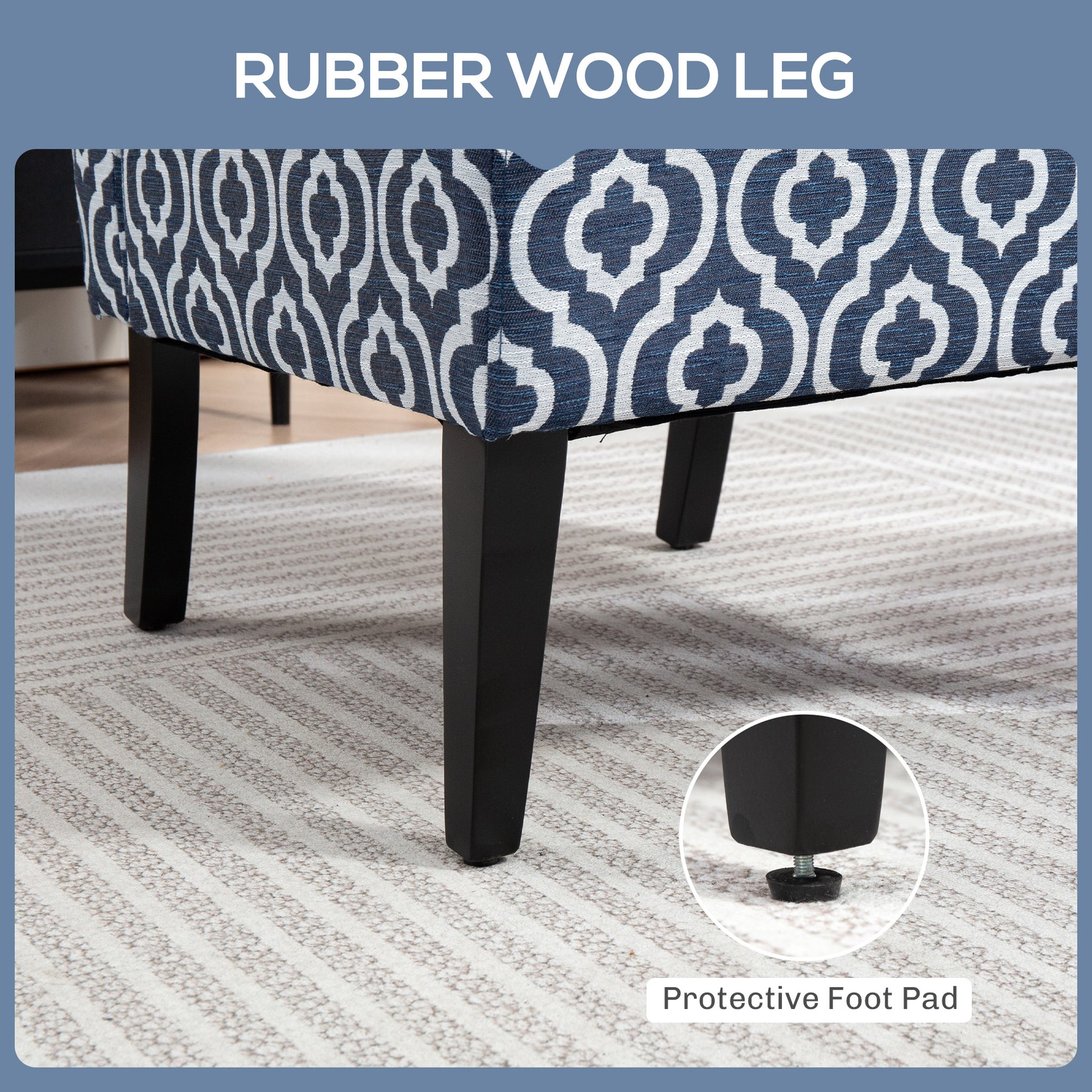 - • 4 rubberwood legs with protective foot pad ensure high stability