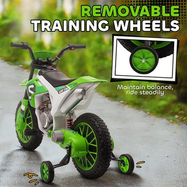 Aosom Kids Dirt Bike Battery-Powered Ride-On Electric Motorcycle with Charging 12V Battery, Training Wheels Green