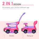 Aosom 2 In 1 Kid Ride on Push Car Stroller Sliding Ride on Car with Horn Music Light Function Secure Bar Ride on Toy for Boy Girl Toddlers 1-3 Years Old Pink
