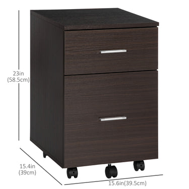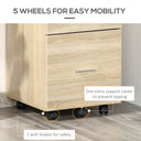 Vinsetto Mobile Filing Cabinet, Vertical File Cabinet with 2 Drawers, Wheels, for Letter or A4 File, Natural