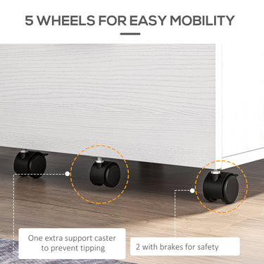 Choosing our Vinsetto two drawer filing cabinet with large capacity makes for the great office supplies storage solution! The big drawer of this under desk cabinet is specially designed for hanging A4 files vertically or letter-sized files horizontally. With 5 smooth-rolling casters, you can really move it almost anywhere, which offers plenty of flexibility and optimum space efficiency. Check out this space-saving mobile filing cabinet and get your home office or study organized!