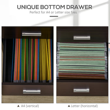- • The large drawer below can hang letters horizontally or A4 size documents vertically