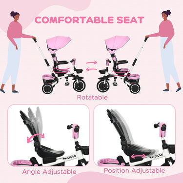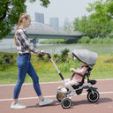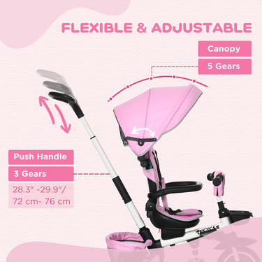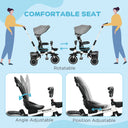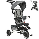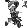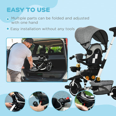 Aosom 6-in-1 Toddler Tricycle for 12-50 Months, Foldable Kids Trike with Adjustable Seat and Push Handle, Safety Harness, Removable Canopy, Footrest, Grey
