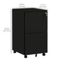 Vinsetto Vertical Steel Filing Cabinet on Wheels, 2-Drawer Lockable File Cabinet with Adjustable Hanging Bar for A4, Legal and Letter Size, White