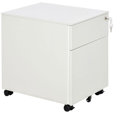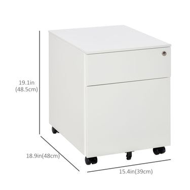 A classic piece for every office area: bring this Vinsetto filing cabinet into your space to keep it neat and paperwork organized. Made from cold rolled steel, the structure is solid and strong, making it suitable for everyday use. It's crafted into a two-drawer design, giving plenty of storage room, with a removable stationery tray and hanging rod for files. With five wheels to move around easily, this storage cabinet with drawers is finished with a lock for security.