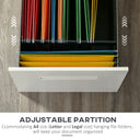 - • Hanging rod in bottom drawer, perfect for suspending folders