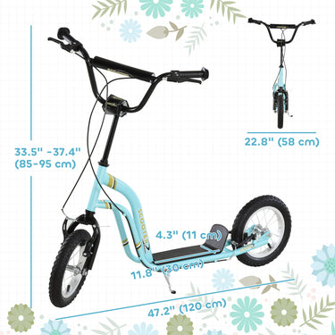 Aosom Dual Brakes Kick Scooter 12-Inch Inflatable Front Wheel Ride On Toy for Age 5+, Black