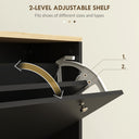 Tuck away your footwear in style with the HOMCOM entryway cabinet. Keep up to 16 pairs neatly organized in dual flip drawers, and adjust the two-level shelves to fit boots to flats seamlessly. The sleek tabletop of this slim shoe cabinet adds a chic touch to any entryway while ensuring your space stays clutter-free.