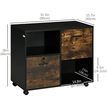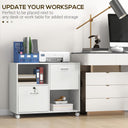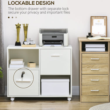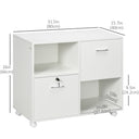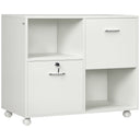 Vinsetto Lateral Filing Cabinet with Drawers and Lock, File Cabinet, Mobile Printer Stand with Open Shelves and Wheels for Letter and A4 Size Documents, White