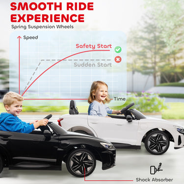 Rev up the fun with the Aosom 12V Audi RS e-tron GT, a sleek electric car for kids! Featuring four wheels, a shock-absorbing suspension system, seatbelt-equipped riding, and headlights to illuminate any potential hazards. Additionally, a horn is available for your child's enjoyment and to alert others when necessary. Trust in our vehicle to provide a smooth and secure ride, even on rough terrain. Safety is our top priority, so let us give you peace of mind while your child has fun.