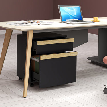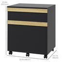 Vinsetto Mobile Filing Cabinet with 2 Drawers, Office Storage Cabinet with 5 Wheels, Black Wood Grain