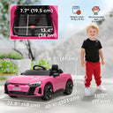 Rev up the fun with the Aosom 12V Audi RS e-tron GT, a sleek electric car for kids! Featuring four wheels, a shock-absorbing suspension system, seatbelt-equipped riding, and headlights to illuminate any potential hazards. Additionally, a horn is available for your child's enjoyment and to alert others when necessary. Trust in our vehicle to provide a smooth and secure ride, even on rough terrain. Safety is our top priority, so let us give you peace of mind while your child has fun.