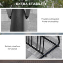 Keep your bikes secure with the DURHAND bike storage rack, which holds up to 6. It suits sheds, garages, and gardens and keeps bikes upright, preventing damage or scratches. Made from heavy-duty steel with a powder-coated finish, this rack is built for outdoor use. Bottom crossbars enhance stability, while vertical bars separate bikes to avoid overcrowding. It's a space-saving solution for keeping your bikes organized.