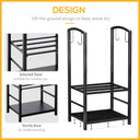 HOMCOM 16" 2-Tier Firewood Log Rack with 4 Tools, Fireplace Wood Storage Holder with Shovel, Broom, Poker, Tongs and Hooks, Black