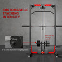 Unlock your fitness potential with the Soozier power rack with a pulley system! This versatile weight cage features a pull-up stand, barbell rack, and a landmine for a full-body workout. Easily adjust the 8-level barbell rack to fit your height and challenge yourself with up to 110 lbs (50 kg). on the lat pull-down and low-row bar. Great for any home workout enthusiast