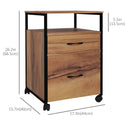 Vinsetto Vertical Filing Cabinet with Wheels, 26.2" Tall File Cabinet with 2 Drawers, Open Shelf, Hanging Bars for Letter and A4 Size, Industrial Printer Stand, Rustic Brown
