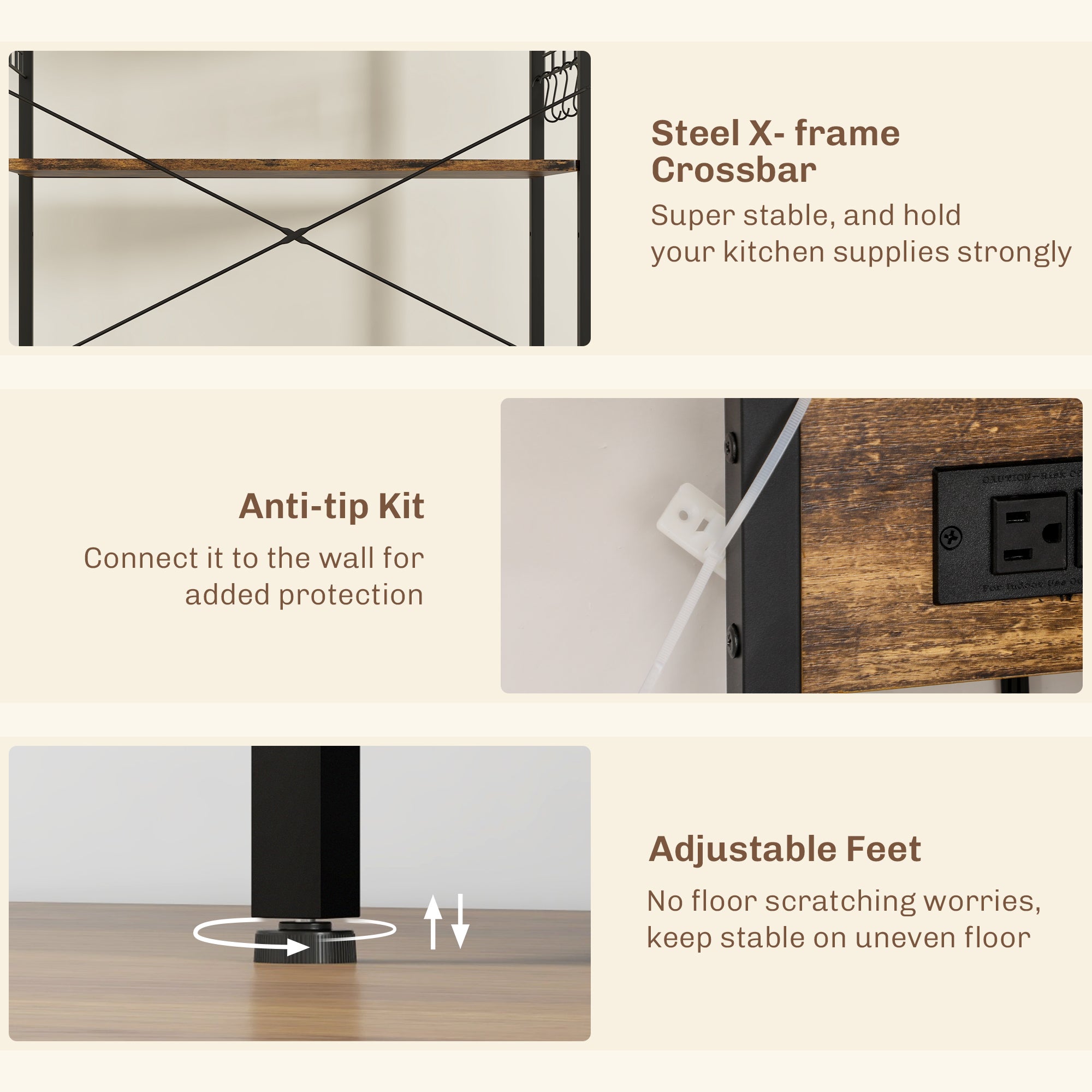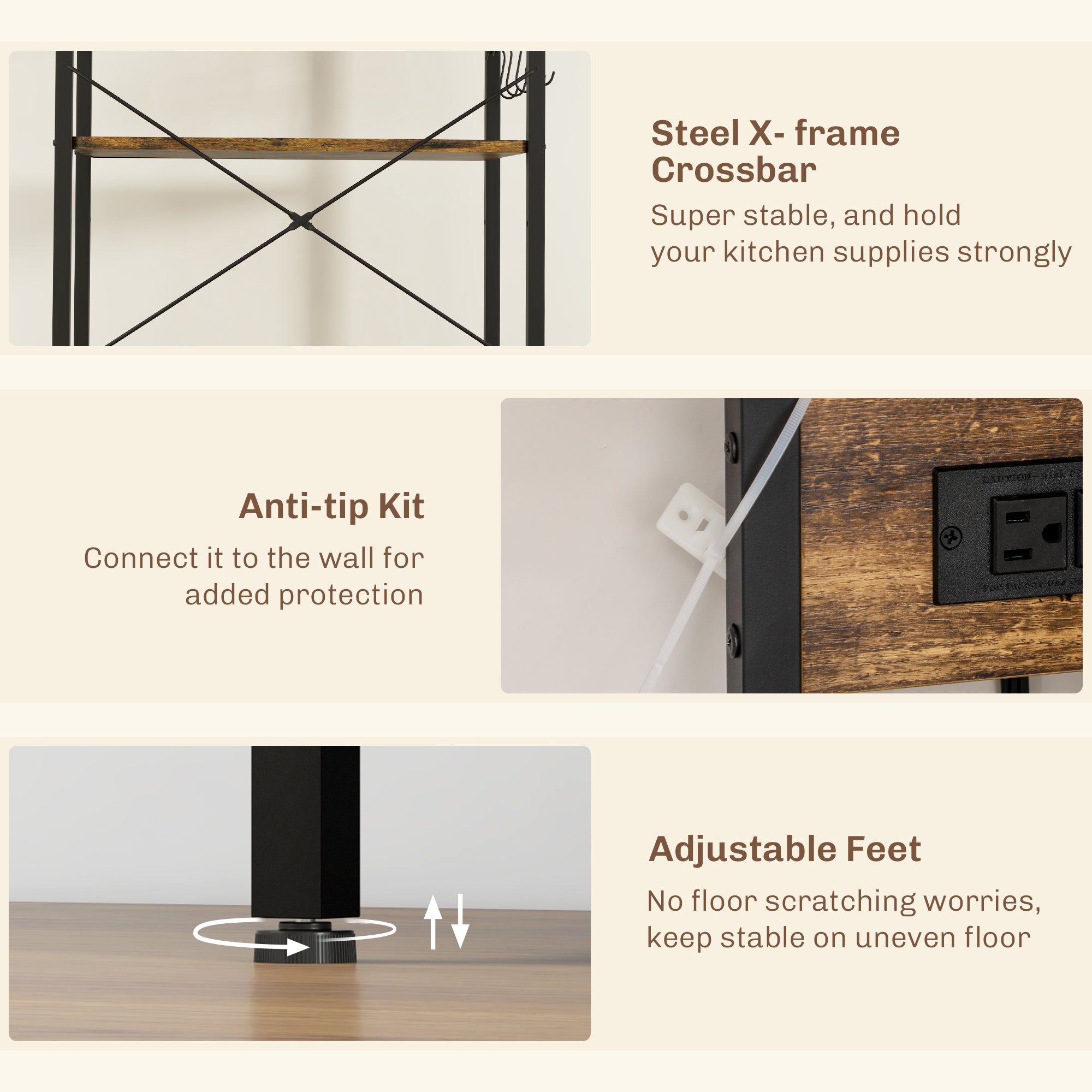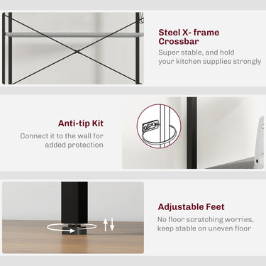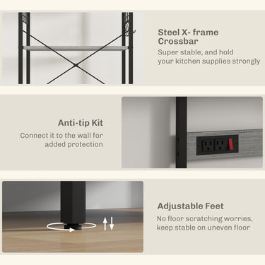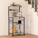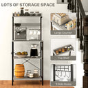 Discover your kitchen's untapped potential with our kitchen storage rack! This stylish and versatile wonder is essential for transforming any space into an organized culinary paradise. Master the art of hosting with the coffee bar setup, while the built-in power outlet ensures your favorite appliances are always ready for action. Boasting storage space, our industrial microwave stand helps declutter countertops, giving you room to unleash your inner chef.
