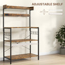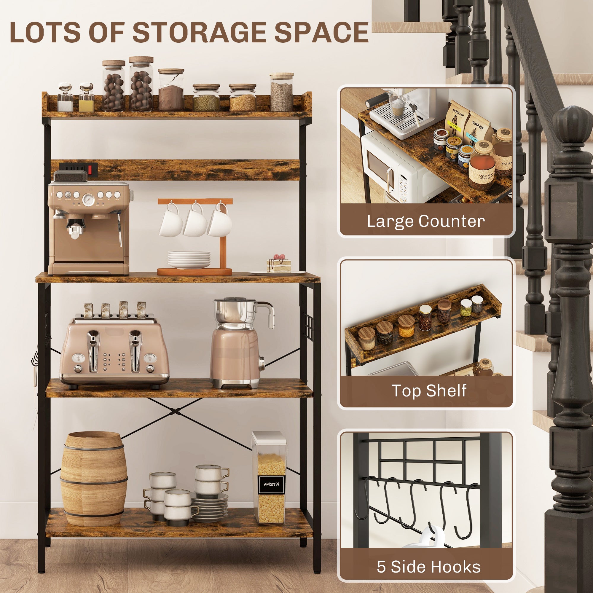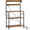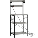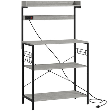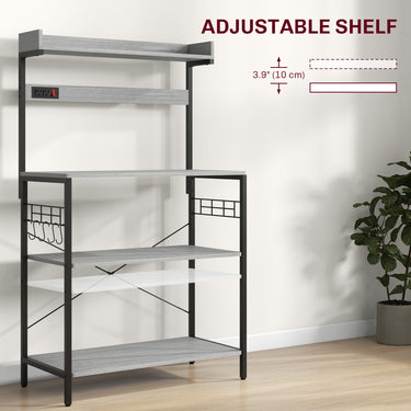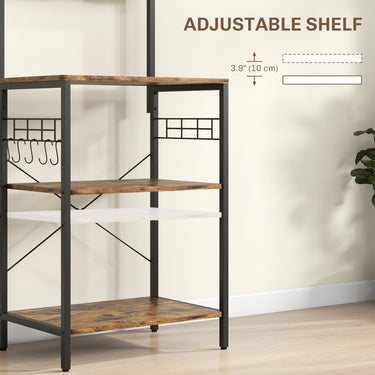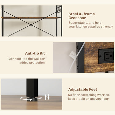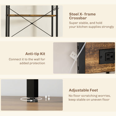 HOMCOM Kitchen Baker's Rack with Power Outlet, Coffee Bar Station with Adjustable Shelves and Hooks, Rustic Brown