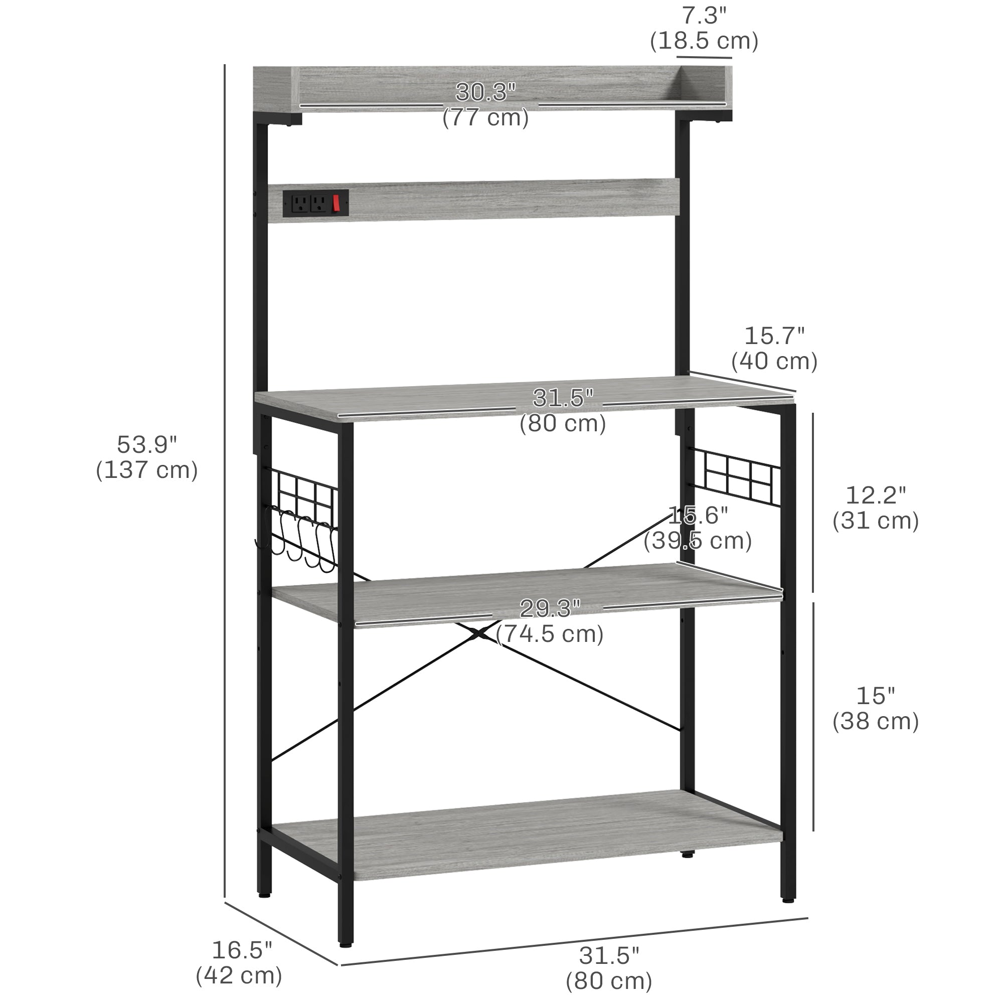 - • 1 x Baker's Rack with Power Outlet