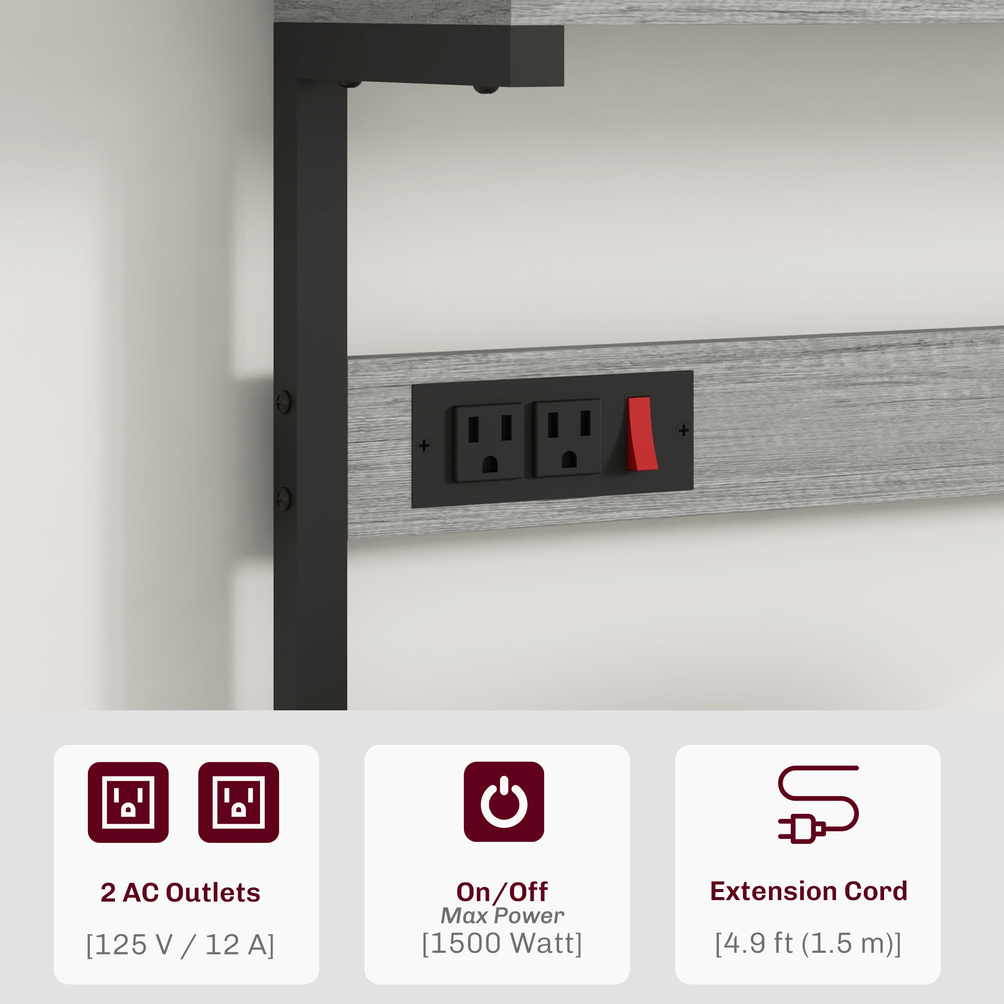- • Two built-in power outlets for easy appliance access and charging