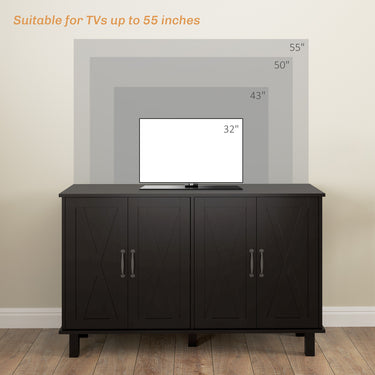 Revamp your living space with the HOMCOM farmhouse sideboard buffet! Organize your dinnerware, pots and pans with ease by using the 4 compartments. Also, you can tailor storage needs with 2 adjustable shelves inside the buffet. This kitchen sideboard with barn doors is bound to instantly upgrade your dining room, living room, or entryway with its farmhouse appearance and versatile storage. Whatever your storage needs, this buffet cabinet will house all the essentials with functional finesse.