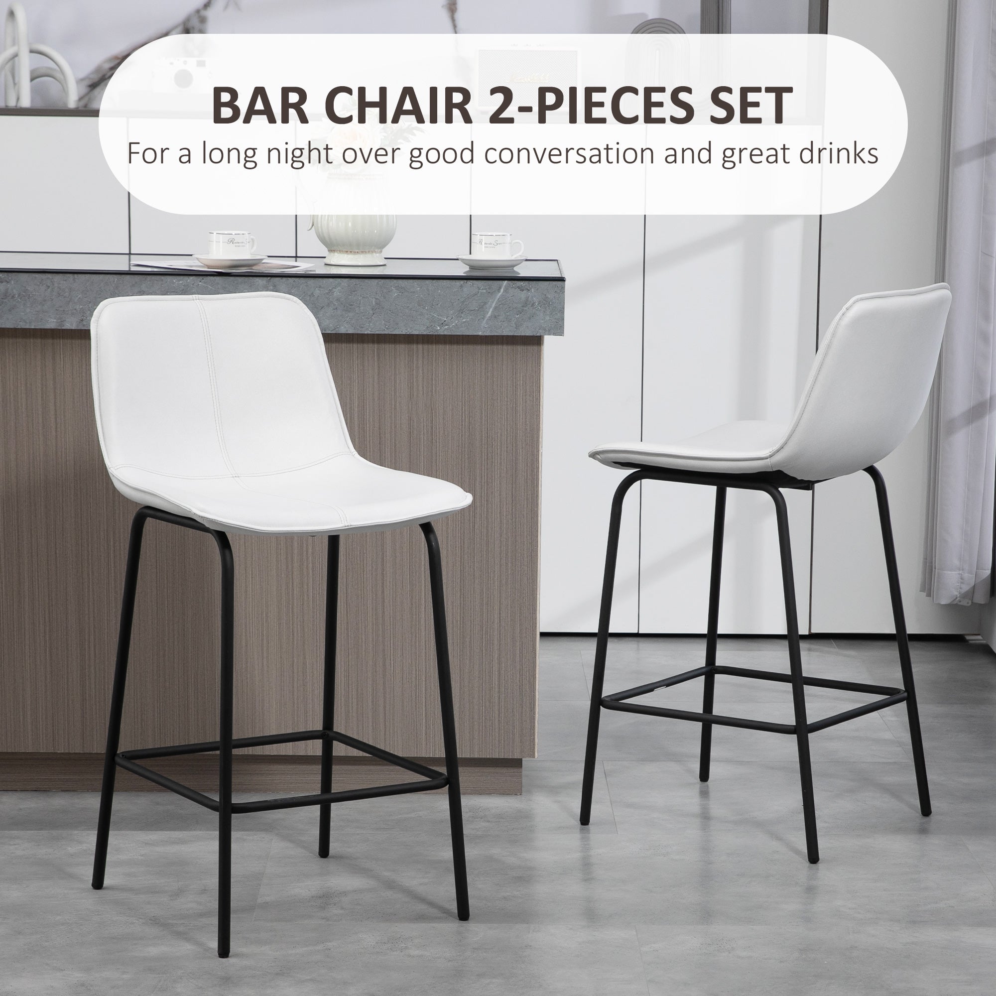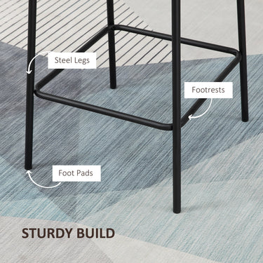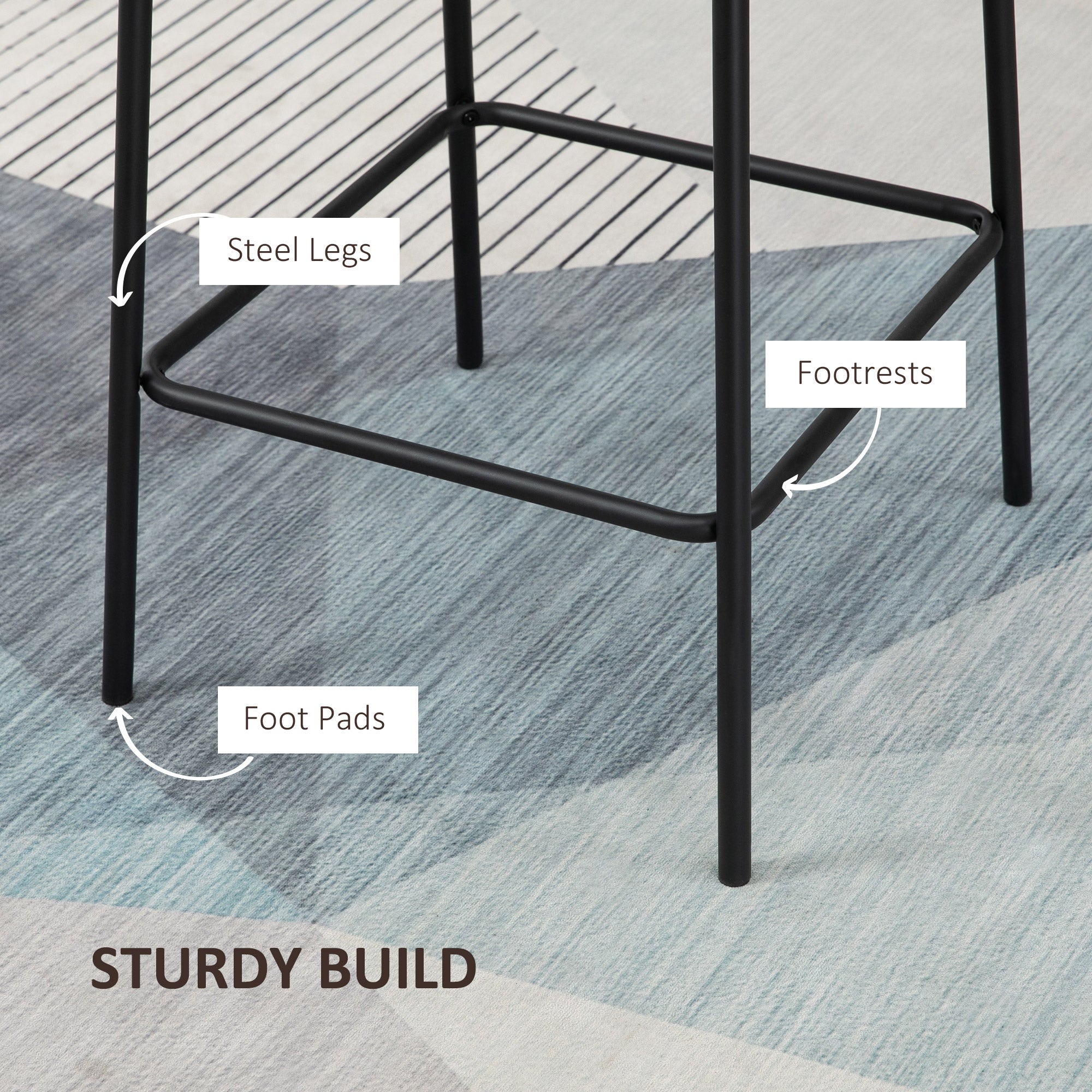 HOMCOM Bar Stools Set of 2, Upholstered Counter Height Bar Chairs, 26" (66 cm) Kitchen Stools with Steel Legs for Dining Area, Kitchen Aisle, Coffee