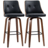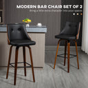 HOMCOM Bar Height Bar Stools Set of 2 PU Leather Upholstered Swivel Barstools with Solid Wood Legs Footrest and Tufted Back, Black