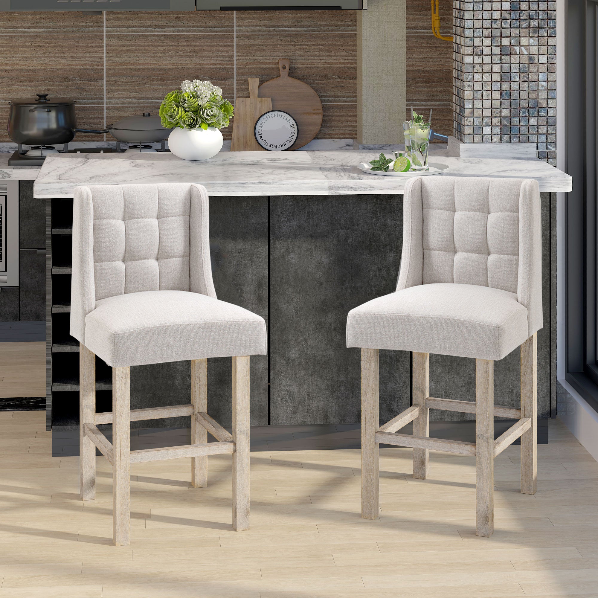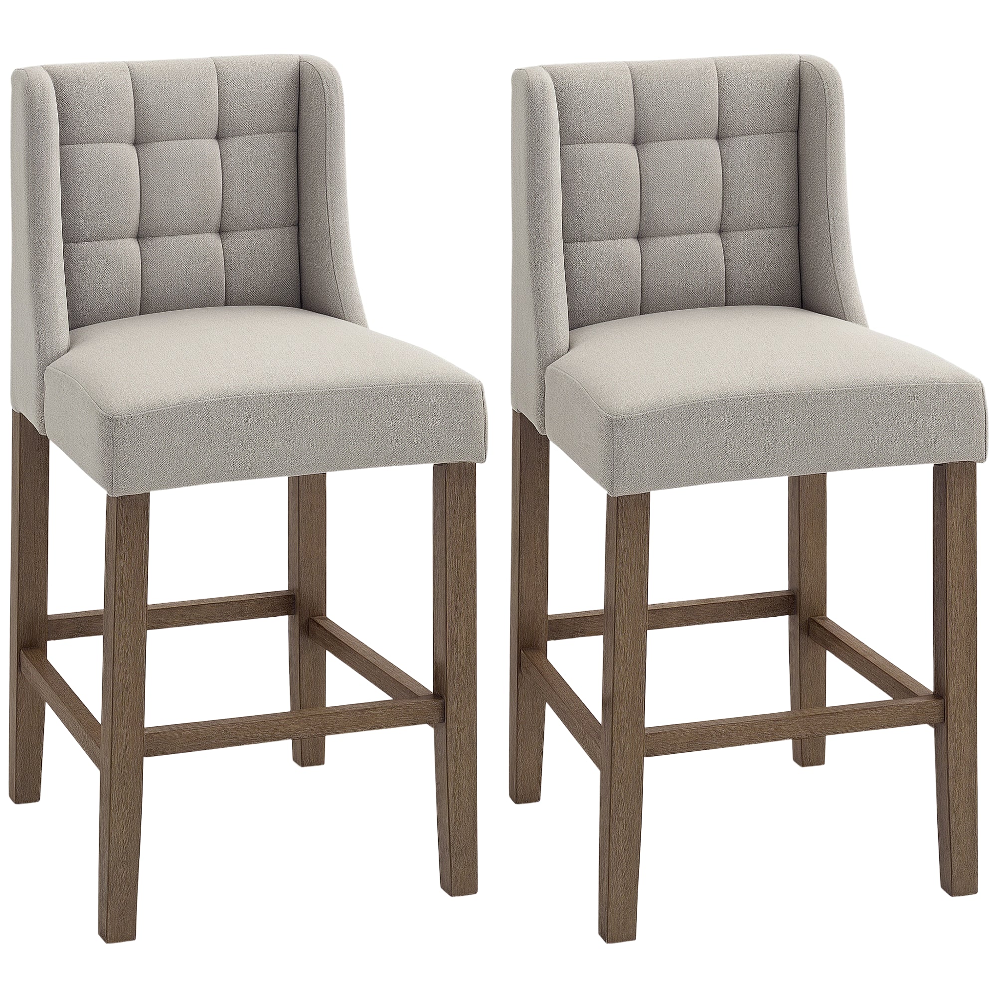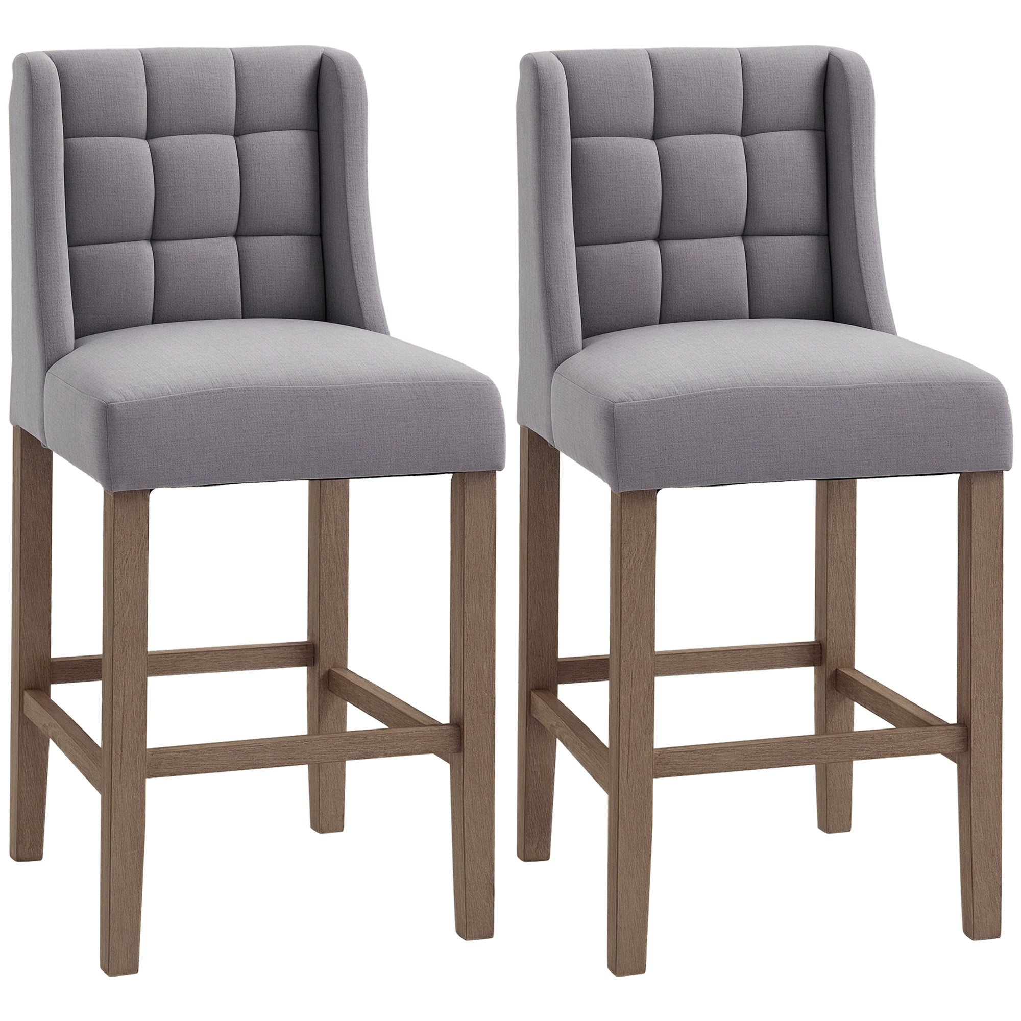 Accent your kitchen counter or provide a cozy spot for your guests with this HOMCOM bar height barstools! The modern and contemporary bar stools with back complements your home décor, while the elegant wingback and tufted backrest adds style and flair. These bar height stools have a backrest and a footrest to keep your body relaxed and supported while you lounge.