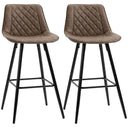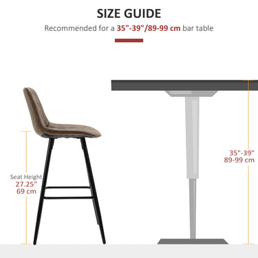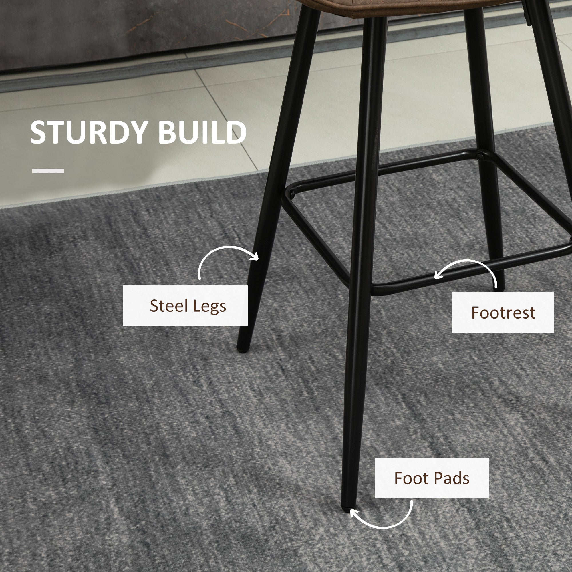 HOMCOM PU Leather Counter Height Bar Chairs Set of 2, 27.75" Bar Stools with Metal Legs for Dining Area, Kitchen Island, Brown