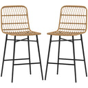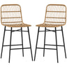 HOMCOM Rattan Counter Height Bar Stools Set of 2, 26" Counter Stools with Back, Modern Bar Chairs for Kitchen Island, Brown