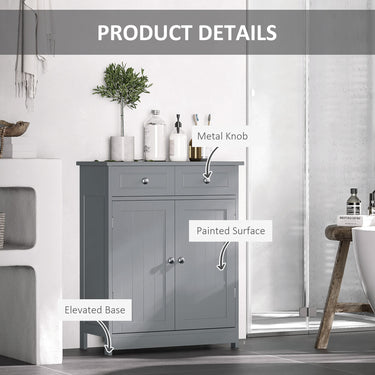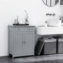 kleankin Freestanding Bathroom Floor Cabinet, Organizer Floor Tower with 2 Door, 2 Drawers, Adjustable Shelf, Grey