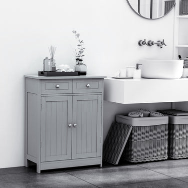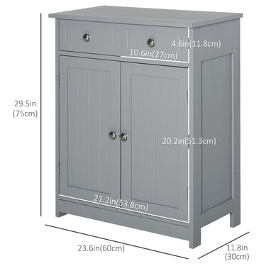 Expand the bathroom storage with this bathroom floor cabinet from Kleankin. Featuring two drawers, a spacious door cabinet with shelf, it can almost store all your bathroom essentials: soaps, towels, tissues, etc. Made of MDF material with grey paint, this bathroom organizer is durable and natural. Also, the storage cabinets with shelves and doors can work as a delicate decoration article in your house. This washroom cabinet won't take much room and can keep your bathroom clean and organized.