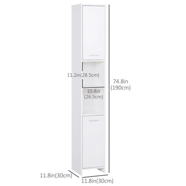 HOMCOM Tall Bathroom Vanities, Narrow Bathroom Cabinets with 2 Doors, Open Compartment and Adjustable Shelves, White
