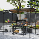 Outsunny 8' x 5' Hardtop Grill Gazebo, Outdoor BBQ Gazebo with PC Board Roof, BBQ Canopy Gazebo with 2 Side Shelves and 10 Hooks