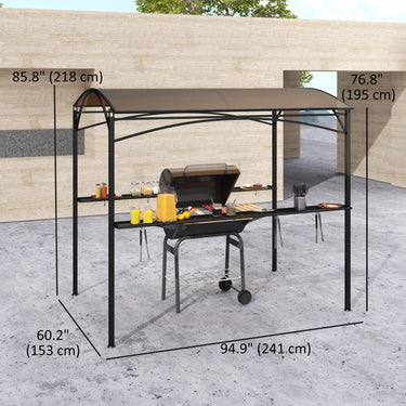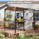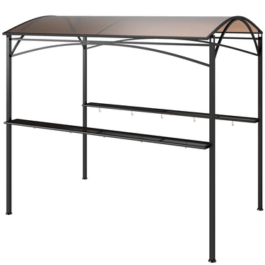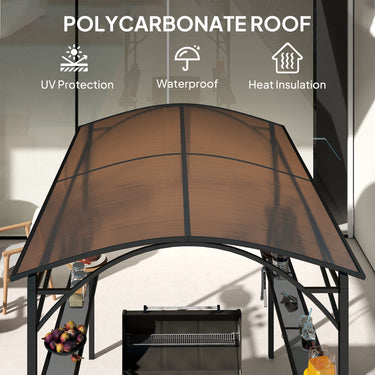 Elevate your grilling experience with the Outsunny BBQ Gazebo! This barbecue shelter features a UV-protected PC board hard top, offering both sun resistance and heat insulation. Complete with 2 side shelves and 10 hooks, it keeps your grilling tools and essentials within reach. Transform your outdoor cooking with this stylish and functional grill gazebo.