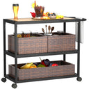 Outsunny Outdoor Bar Cart with Side Handle, 3-Tier Rolling Cart on Wheels with Removable Rattan Basket, Mixed-Brown